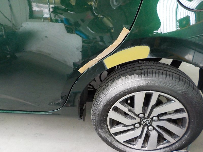 今回は「トヨタ パッソ」の左クォーターパネルのキズ・ヘコミの修理作業を行いました。