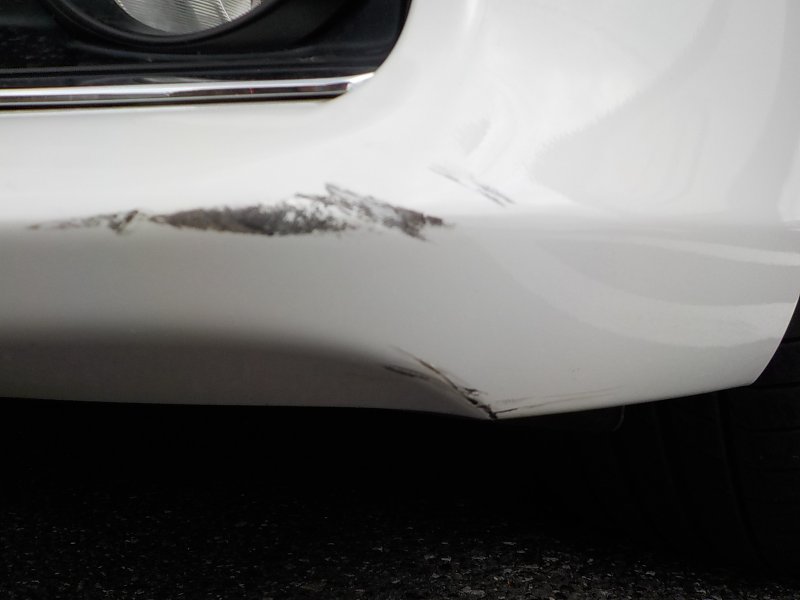 今回は「トヨタ マークX」のフロントバンパーのキズ・ヘコミの修理作業を行いました。