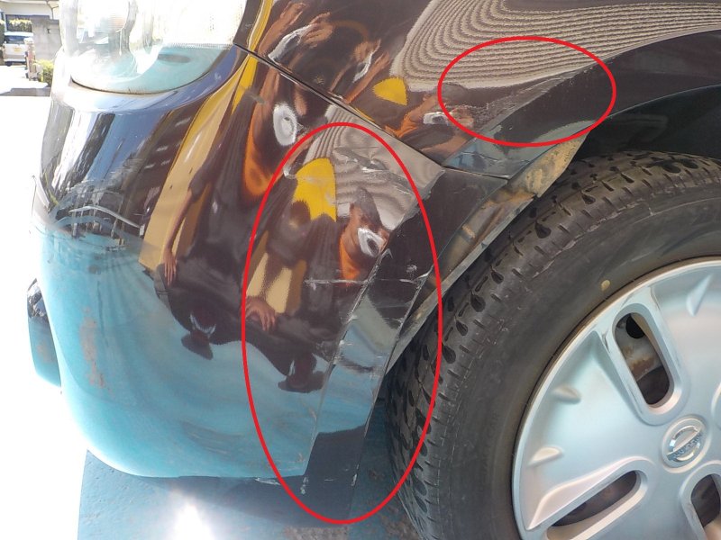 | 修理の箇所・サービス内容 | フロントバンパー+左フロントフェンダー キズ・へこみ 板金修理 |