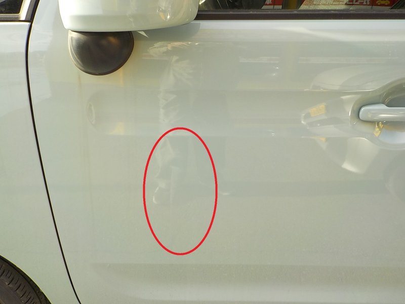 損傷箇所は、左フロントドアのキズ・へこみです。