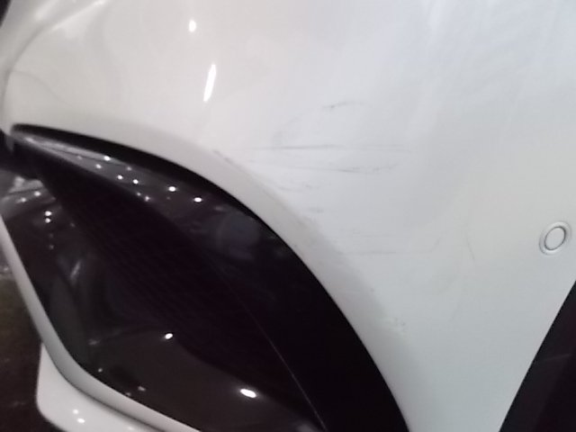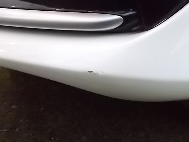 フロントバンパーの傷になります。ボディ色が白で擦傷で有りますので、傷が見えにくいと思います。擦傷の修理を行い、塗装を行って完成させてます。