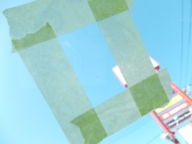車内から見たフロントガラスの飛石による割れです。
