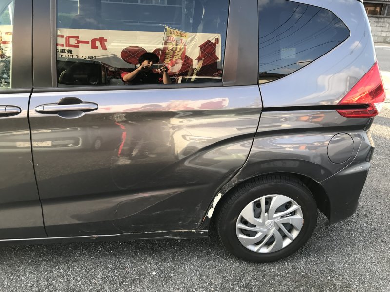 埼玉県上尾市|ステップワゴン(ホンダ)のキズ・へこみ直し事例(左後ろタイヤ付近鈑金修理)
