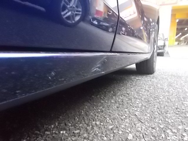 今回のご紹介では、ドア下のロッカーパネルと呼ばれる場所となります。ドアやバンパー等とは違い、目立ちにくい場所の修理依頼となりました。ドア等は目線に比較的入りやすい事で修理依頼となりますが、今回の場所では目立つポイントでは無いのでそのままにされるケースもございます。今回は未だ新車購入2年程度の為、修理にて治せる所であれば修理をしたいとご要望でした。作業も3日間で対応しております。