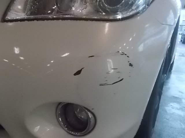 フロントバンパーの修理希望でご来店を頂きました。白いボディに黒の傷の為、目立ってしまう事もあり、直ぐにでも対応をしてもらいたいと要望が御座いました。作業も2日で完成しております。今回のお客様の様な目立つから早く直したいという声は多いです。キズは気にしてしまうと、もっと気になる、目に入ってしまう事が御座います。気になったキズが出来てしまったら、お気軽にご相談下さい。