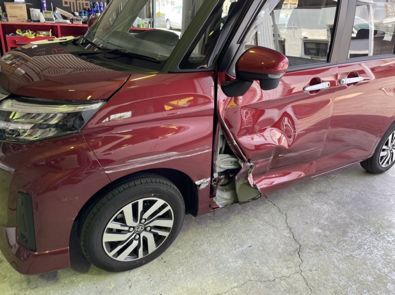 大阪府泉佐野市|ルーミー(トヨタ)のキズ・へこみ直し事例(助手席ドアパネルほか)