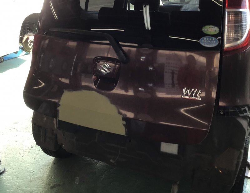 先ずは、リアバンパーを取り外して、バックドアとリアバンパーのへこみをパテを使い復元させていきました。
