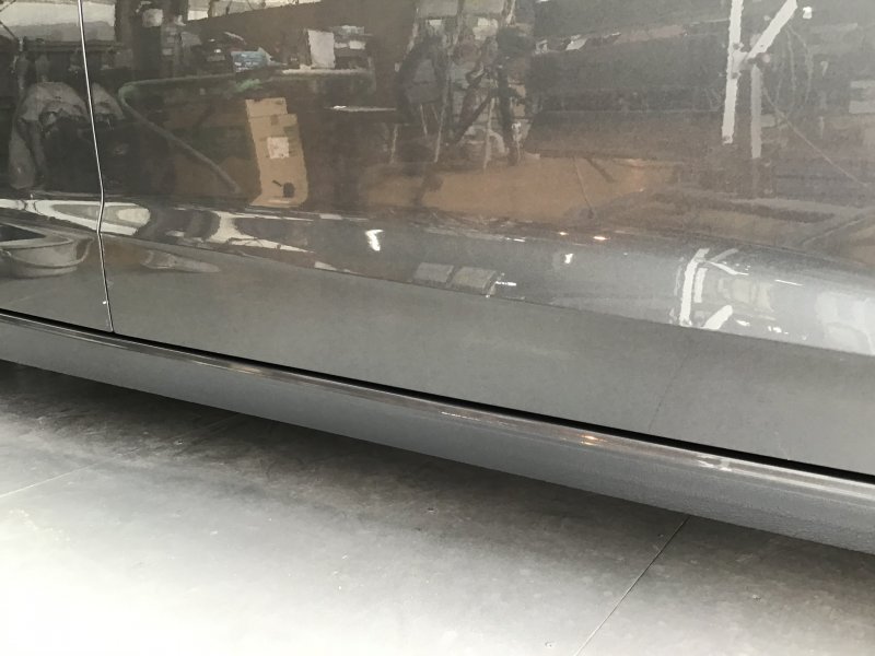 お車を確認させて頂くと、右サイドステップ部分にへこみキズが付いていました。