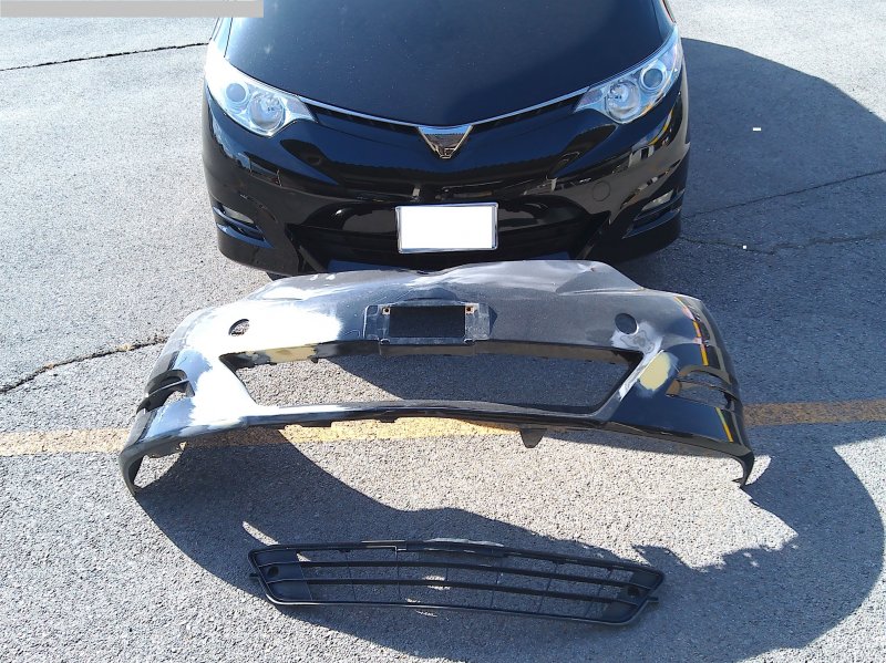 トヨタ エスティマ フロントバンパー取替、ライセンスプレート再発行 那須塩原市 西那須野 大田原市 他店で車をご購入のお客様 他エリアのお客様大歓迎