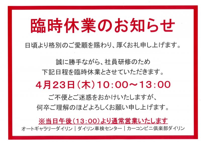誠に勝手ながら、社内研修のため
