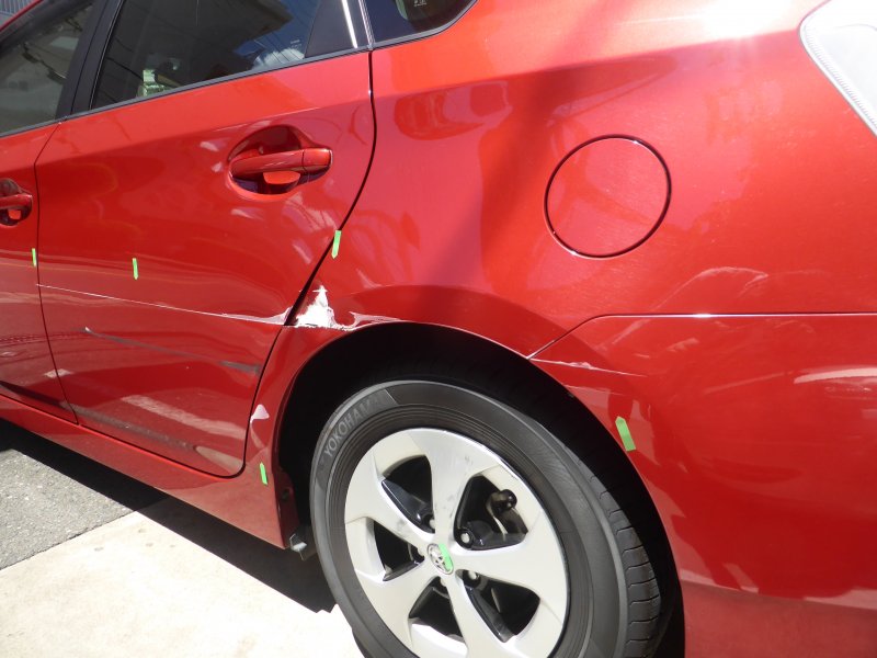 大阪市 城東区 トヨタ プリウス リヤドア クォーターパネル すり傷 凹み 補修 保険