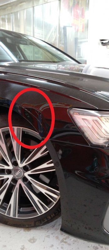 アウディ フロントフェンダー 傷 へこみ 鈑金 塗装 修理 大阪 大東市