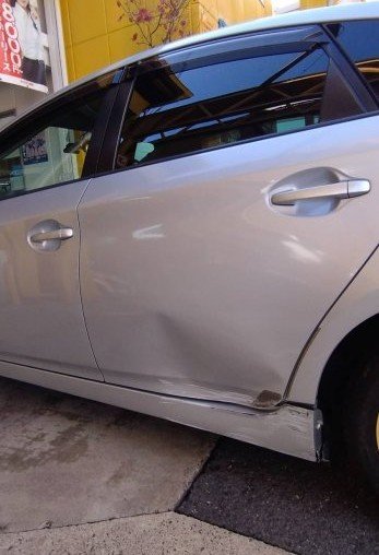 トヨタカローラスポーツのリアドアパネル・サイドステップのキズ・へこみの修理です。