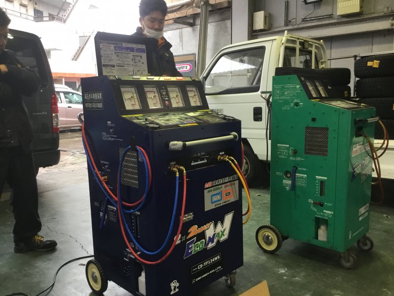 今回の機械の導入により、当店ではありとあらゆるエアコンガスの交換に対応することが可能となりました!!
