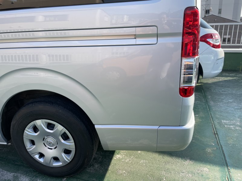今回はハイエースのリヤクォーターの凹み修理とリヤバンパーの傷修理です。