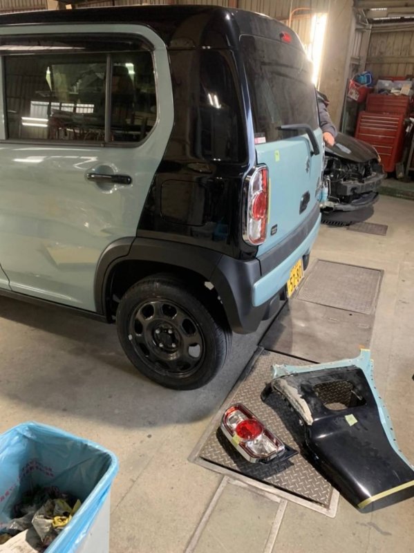 今回はハスラーでテールランプ付近が凹んでしまい、板金修理では難しいので交換での修理になりました。