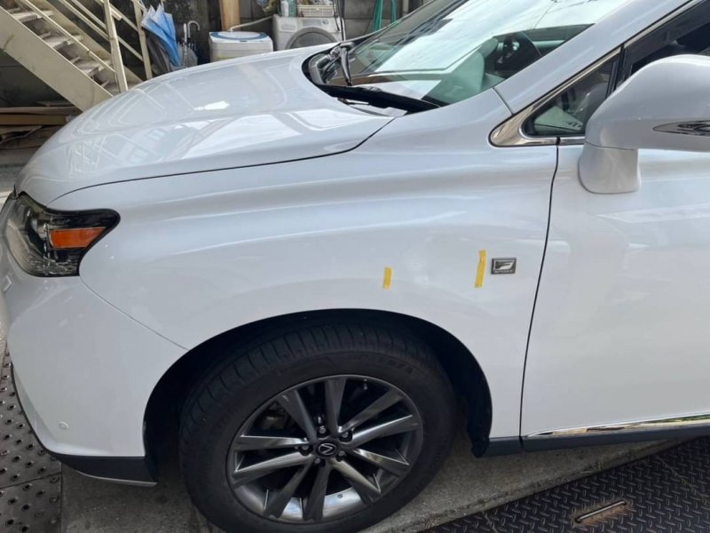 今回はレクサスのRX450のフロントフェンダーの凹み修理です。