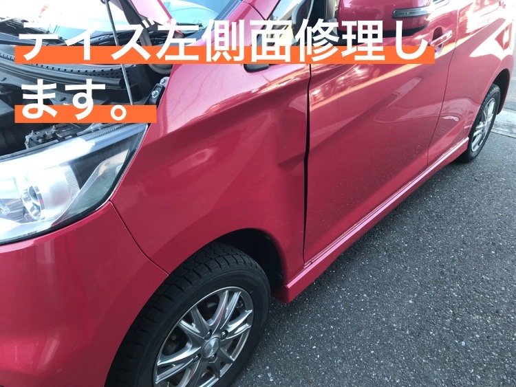 岐阜県岐阜市|デイズ(日産)のキズ・へこみ直し事例(左フロントフェンダー修理 左フロントドア修理)