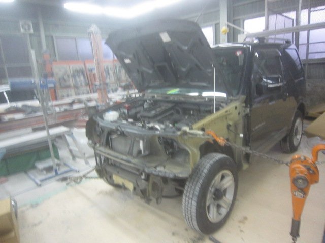 左ヘッドライト交換でボンネット鈑金・骨格の修理