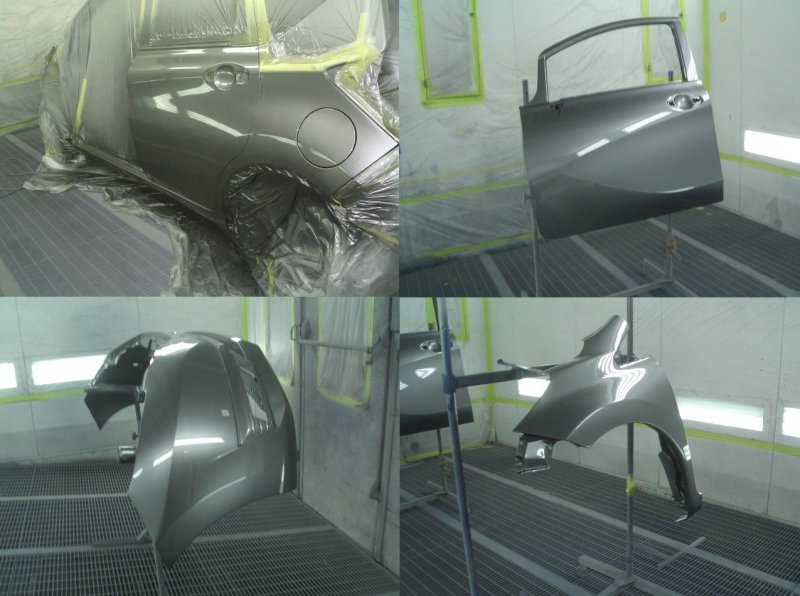 フロントバンパー・フード・フロントフェンダー・リアドアパネル・リアフェンダー修理で対応します。損傷の激しいフロントドアパネル・リアバンパー交換で対応になります。