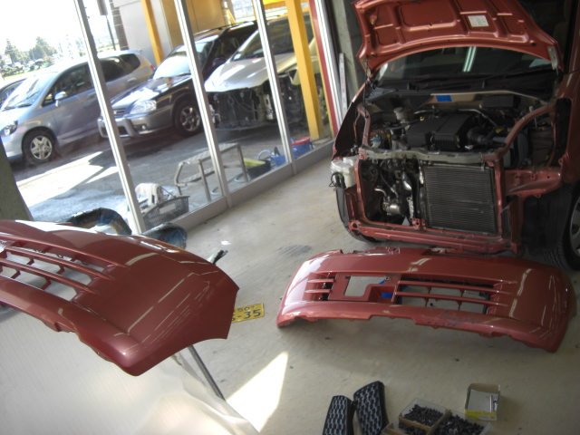 ヘッドライト・フロントバンパーを外して骨格(ラジエータコアサポート・左右フェンダーエプロン・左右メンバーのチェックをして組み付けて完成です。