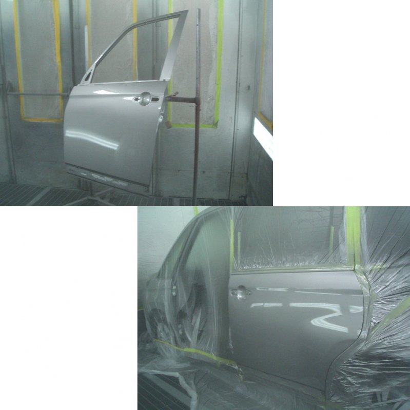 リアドアの塗装と新品のフロントドアの塗装になります。