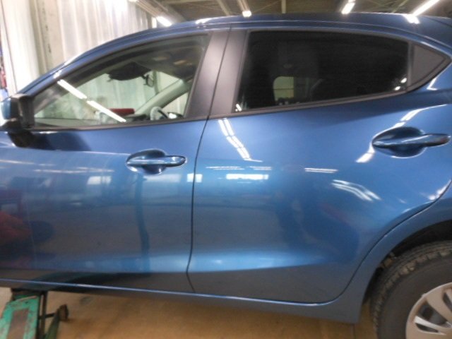厚木市 マツダ2 フロントバンパー、ヘッドライト、フロントフェンダー、フロント・リアドア修理