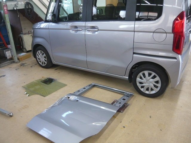 厚木市 N-BOX フロントバンパー、フェンダー、前後ドア修理