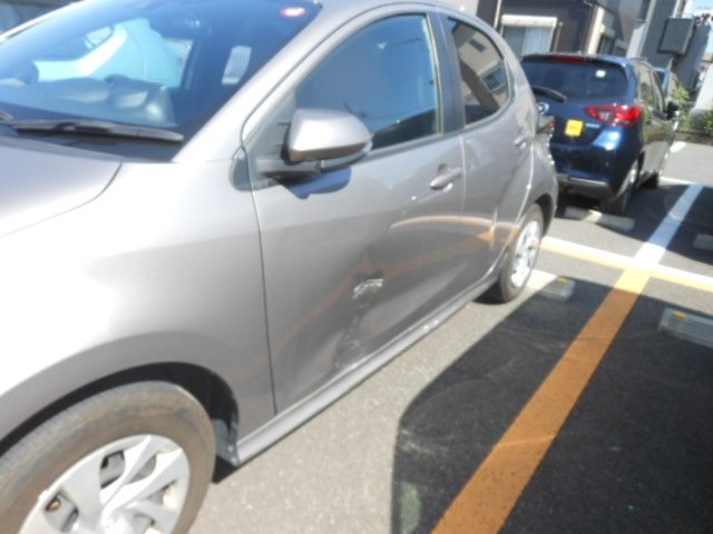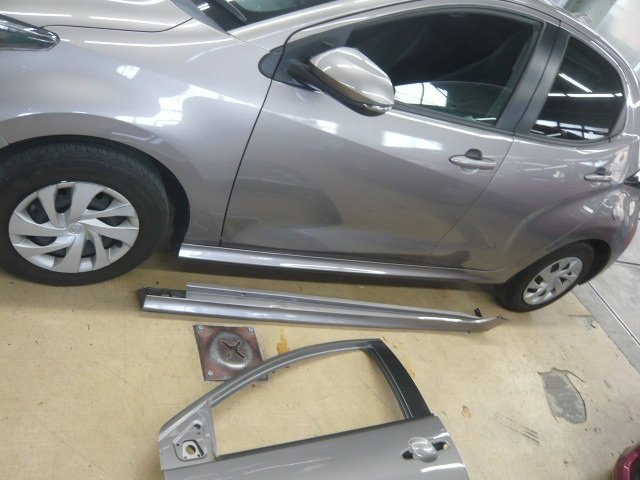 厚木市 ヤリス フロントドア、ロッカーアウターパネル修理