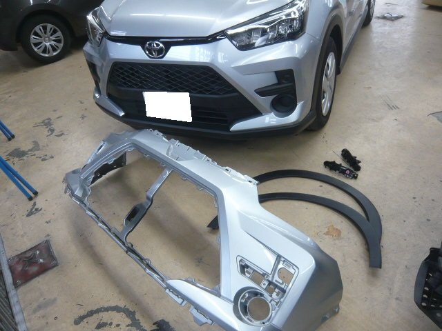 厚木市 アクア フロントバンパー、フェンダー修理
