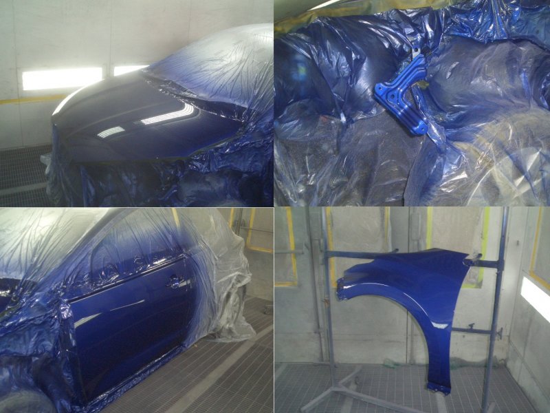 フロントバンパー、ヘッドライト、フェンダーに関しては損傷が激しい為交換で対応、ボンネット、フロントドア鈑金修理で対応して行きます。