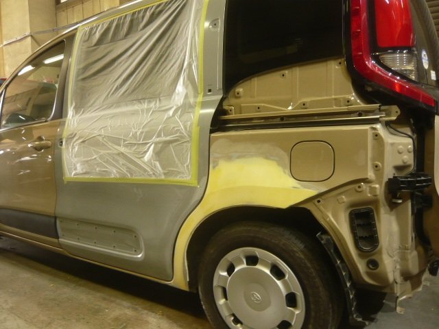 リアドアは新品に交換、リアバンパー、クォータパネル鈑金終了後トスします。