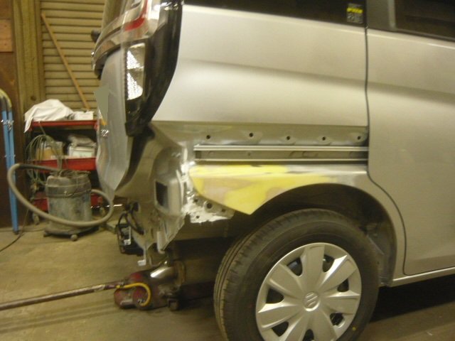 海老名市 ソリオ リアバンパー、クォーターパネル、バックパネル修理及びタイヤ、ホイール、リアサスペンション交換