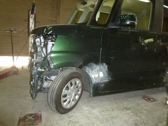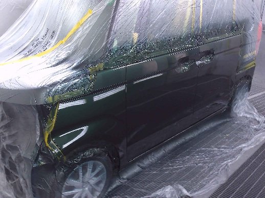 海老名市 N-BOX フロントフェンダー、フロント・リアドア、サイドシールパネル修理