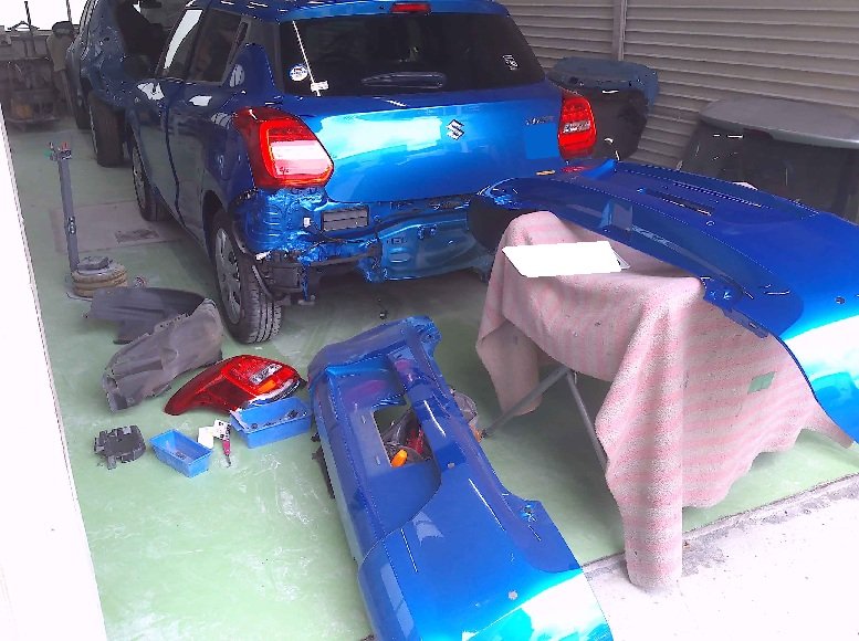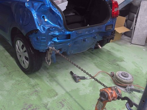 海老名市 スイフト リア廻り修理及びフレーム修正
