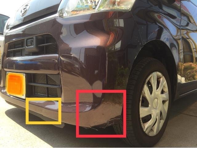 下部に大きな割れとキズがあります、ディーラーでは交換をすすめられる場合が多く高額になりがちですが、今回は修理にて対応させていただき費用も抑えることができました。
