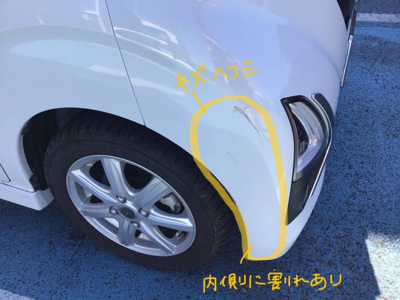 | 修理の箇所・サービス内容 | リヤバンパー交換、バックパネル簡易修理、塗装はタッチペン |