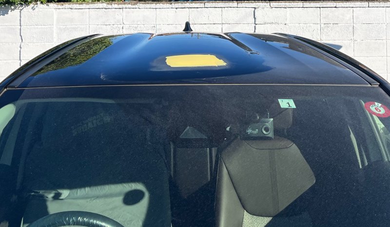 分かりづらいですがルーフパネルの真ん中にヘコミがあります💦