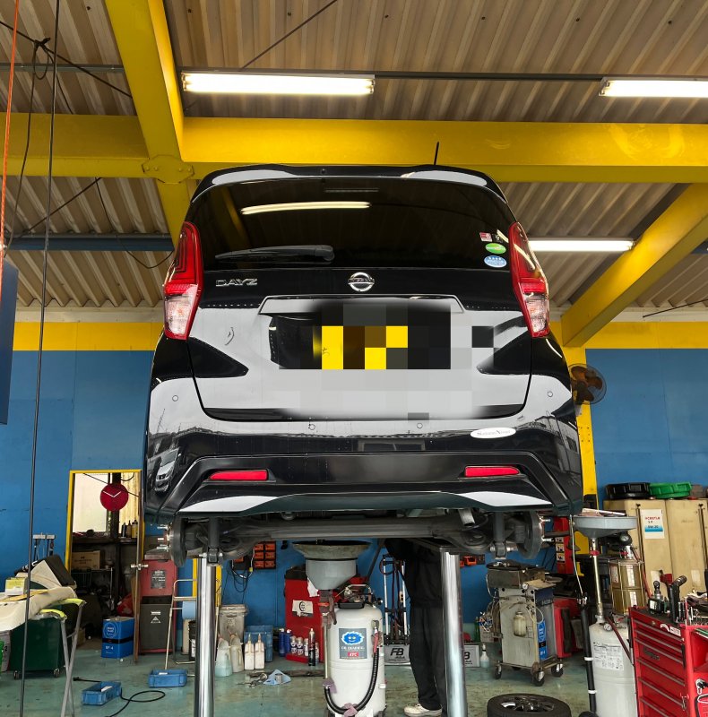 早速、リフトにあげて法定点検箇所に基づいて点検整備していきます(^-^)✨