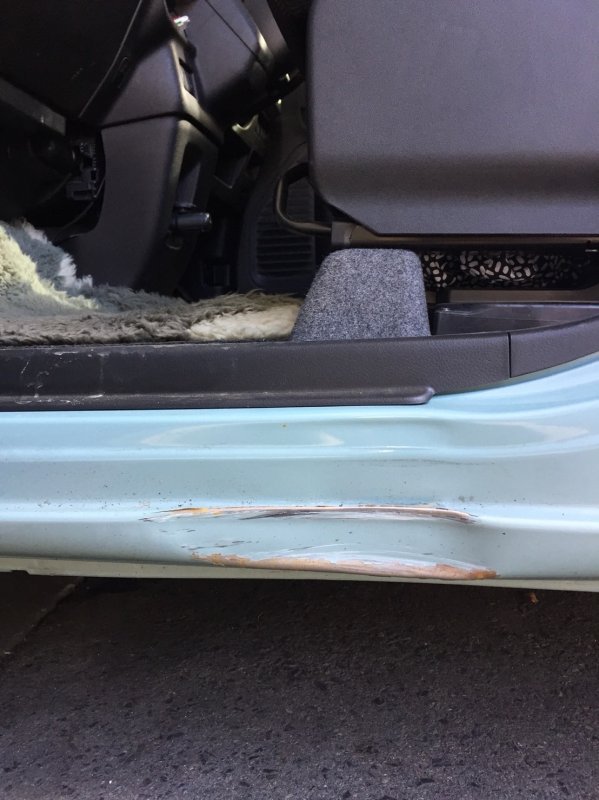 ドアもサイドシルもかなりはっきりと凹んでしまっています。