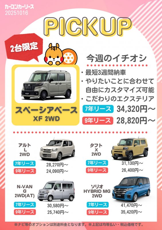 新車カーリース専門店 カーコンビニ俱楽部 ワタショウモータースのオススメ即納 新車