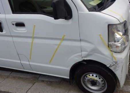 | 修理の箇所・サービス内容 | フロントバンパー、フロントフェンダー、ボンネット、フロントドア、ヘッドライト交換 |
