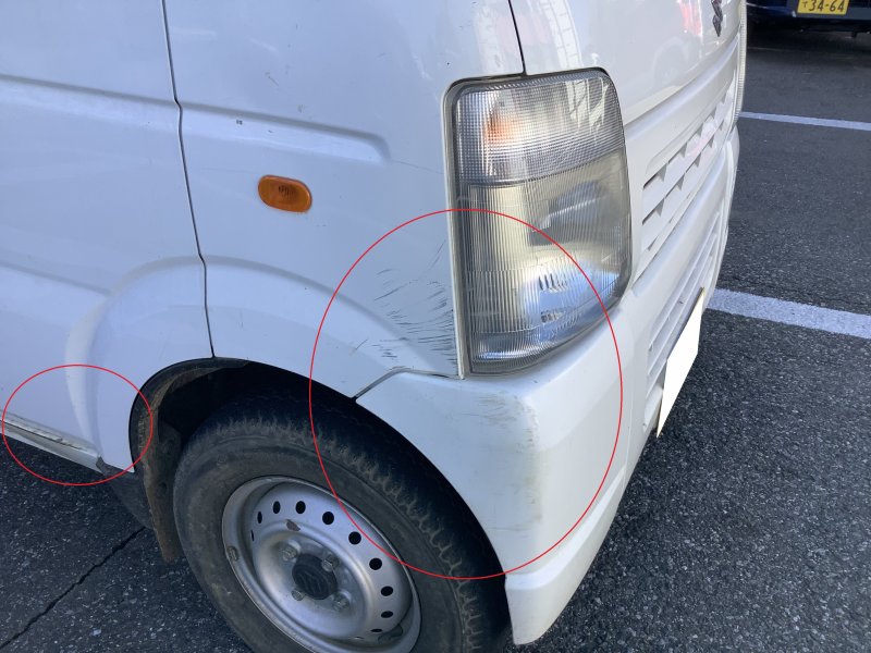 千葉市 キャリイトラック フロントバンパー/右前ドア/サイドステップ キズへこみ修理