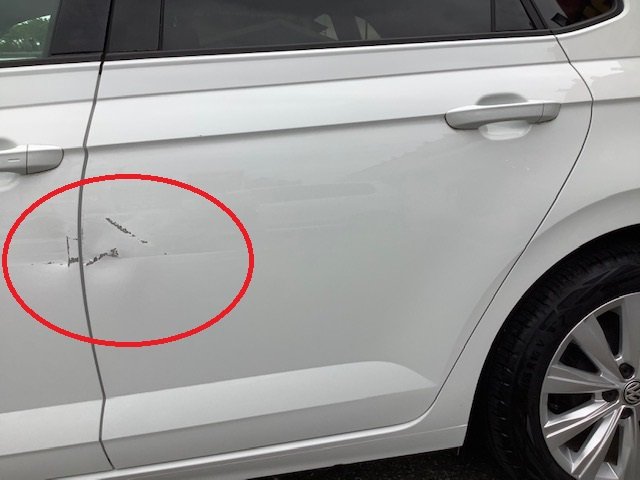 確認させて頂くと、左の前後ドアにキズへこみがついていました。