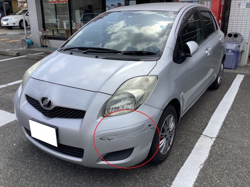 千葉市 ヴィッツ フロントバンパー キズへこみ修理