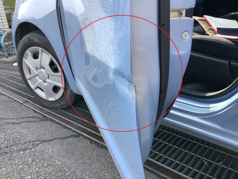 お車を確認させて頂くと、左前ドアと左後ろドアにこじ開けされた様な跡が付いていました。駐車場に停めておいたら、翌朝いたずらされていたそうで、車内の盗難は無かった様で不幸中の幸いでした。