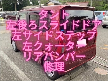 千葉市 タント 左後ろスライドドア/左サイドステップ/左クォーター/リアバンパー キズへこみ修理