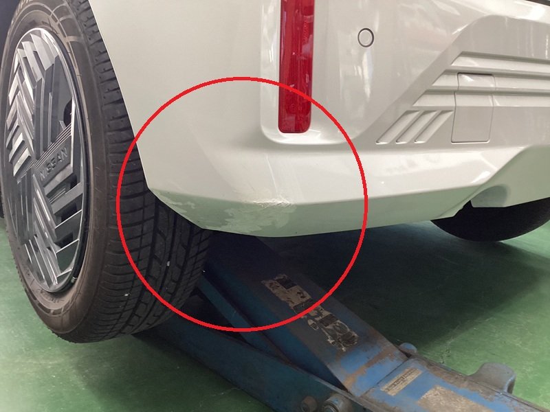 今回は、日産ノートのリヤバンパーにできてしまったキズ・ヘコミ修理をご依頼いただきました。