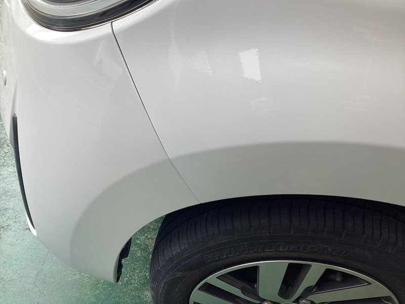 左前タイヤの上 フェンダーのこすりキズ 修理塗装 愛媛県松山市|パッソ(トヨタ)のキズ・へこみ直し事例