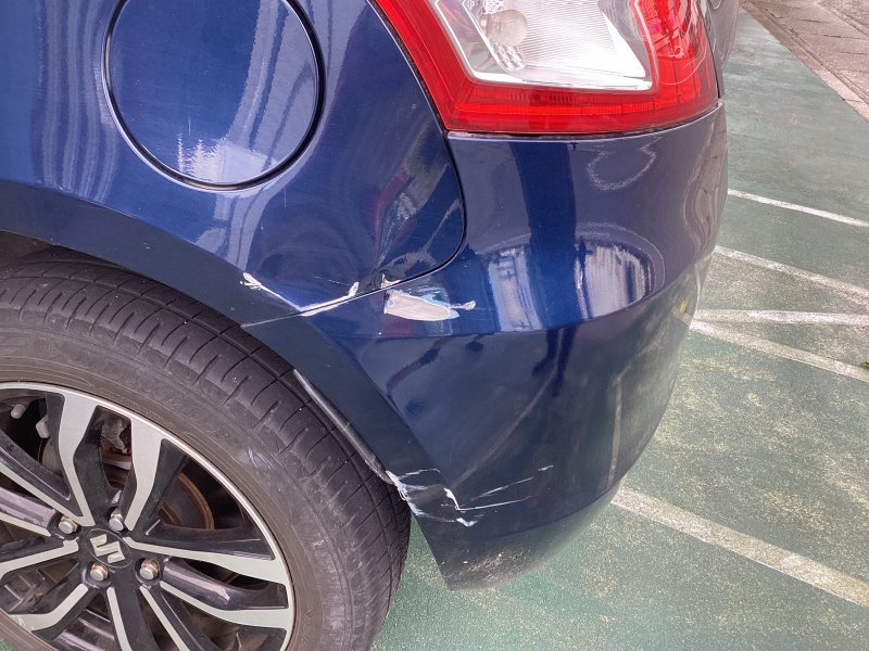 愛媛県松山市|スイフト(スズキ)のキズ・へこみ直し事例(後ろ側バンパー、後ろ側フェンダー)